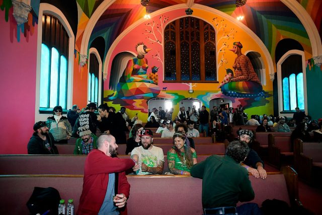 DENVER, CO—Stever Berke is the CEO of Bangholdings.com and one of the founders of the church for marijuana supporters. He owns the property which is a 113-year-old church. The building was embellished with beautiful and colorful paintings by artists Kenny Scharf and Okuda San Miguel.